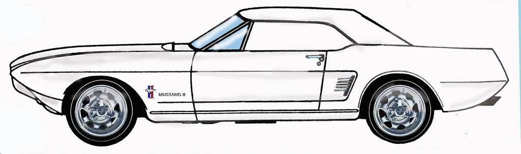 Z kolei w 1963 przedstawiono Concept II – prototyp przypominał to co znamy jako pierwszą generację pony-cara. Concept II przypominał produkcyjnego Mustanga wyglądem, jak i lokalizacją silnika – zrezygnowano z motoru centralnie auta na rzecz układu klasycznego. Motor także był słuszny i tru amerika, bo V8.